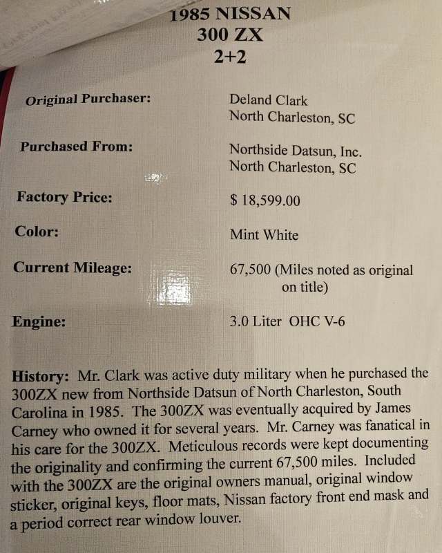 Mechanically, the car is said to run and drive “100%,” with everything functioning properly, including cold air conditioning. The T-tops come with their original covers, and a custom car cover is included as well. For a nearly 40-year-old Nissan, this combination of documented ownership, functional equipment, and cosmetic freshness is extraordinary.