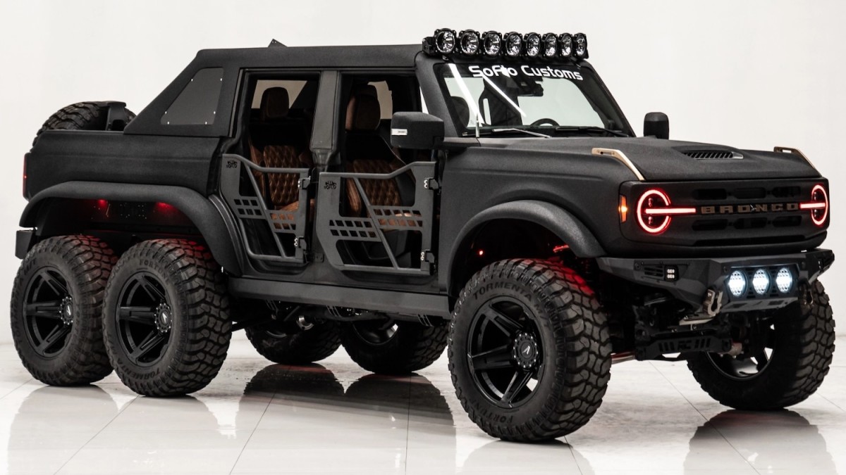 Enter SoFlo Customs – a Florida-based outfitter with a reputation for bold builds. Introduced in 2022, one of its projects stretched the Bronco and added a third axle, turning the SUV into a short-bed pickup. The result is the Apocalypse Dark Horse, a Bronco 6x6 that’s less about practicality and more about standing out. It’s not for everyone, but that’s the idea.
